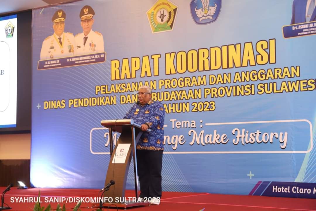 KENDARI,WAJAHSULTRA,COM–Gubernur Provinsi Sulawesi Tenggara Ali Mazi, Membuka Rapat Koordinasi Pelaksanaan Program dan Anggaran Dinas Pendidikan dan Kebudayaan Provinsi Sultra tahun 2023 yang diselenggarakan di Hotel Claro Kendari, Jumat 17 Februari 2023.