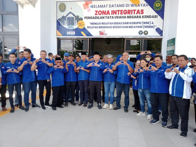 KENDARI,WAJAHSULTRA,COM–Ratusan Kader Partai Demokrat Sulawesi Tenggara (Sultra) datangi kantor Pengadilan Tata Usaha Negara (PTUN) Kendari dalam rangka menyampaikan surat perlindungan hukum kepada Ketua Mahkamah Agung (MA) RI di Jakarta.